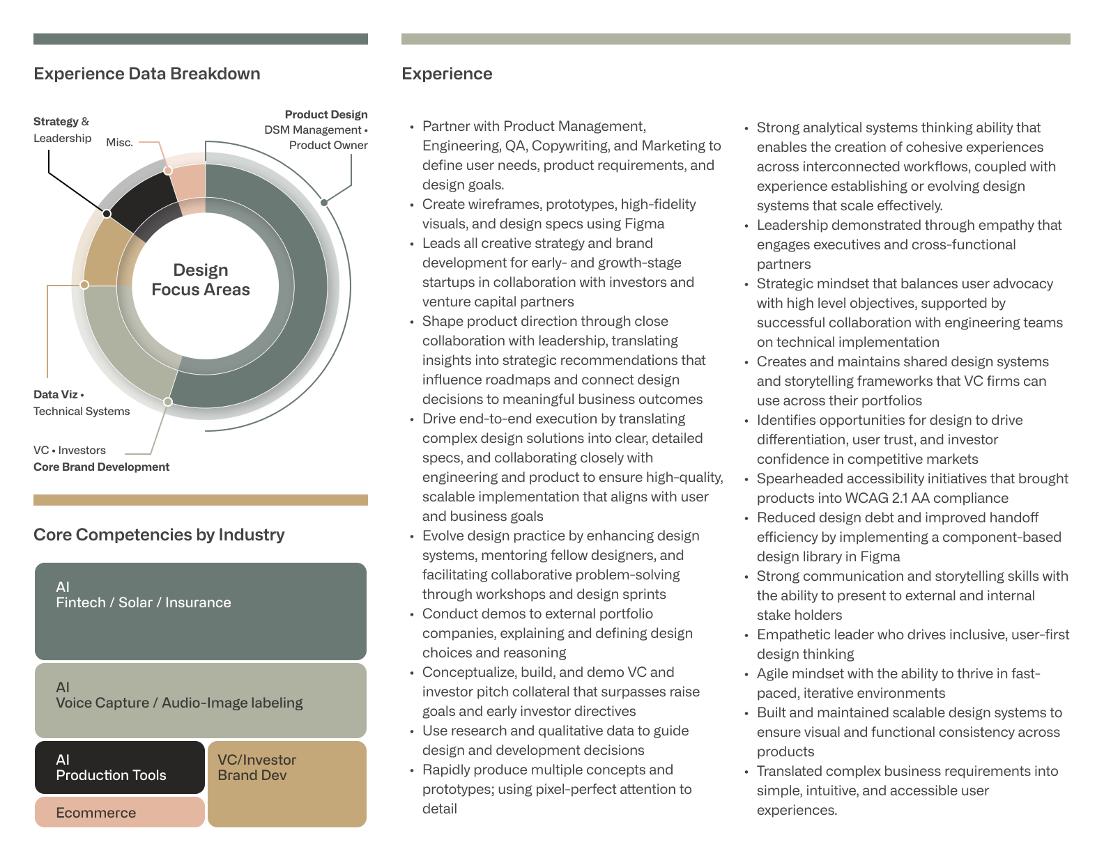 My experience and skill set listed below